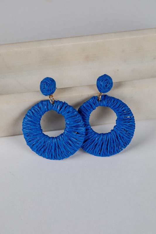 Sarah Blue Straw Hoop Earrings