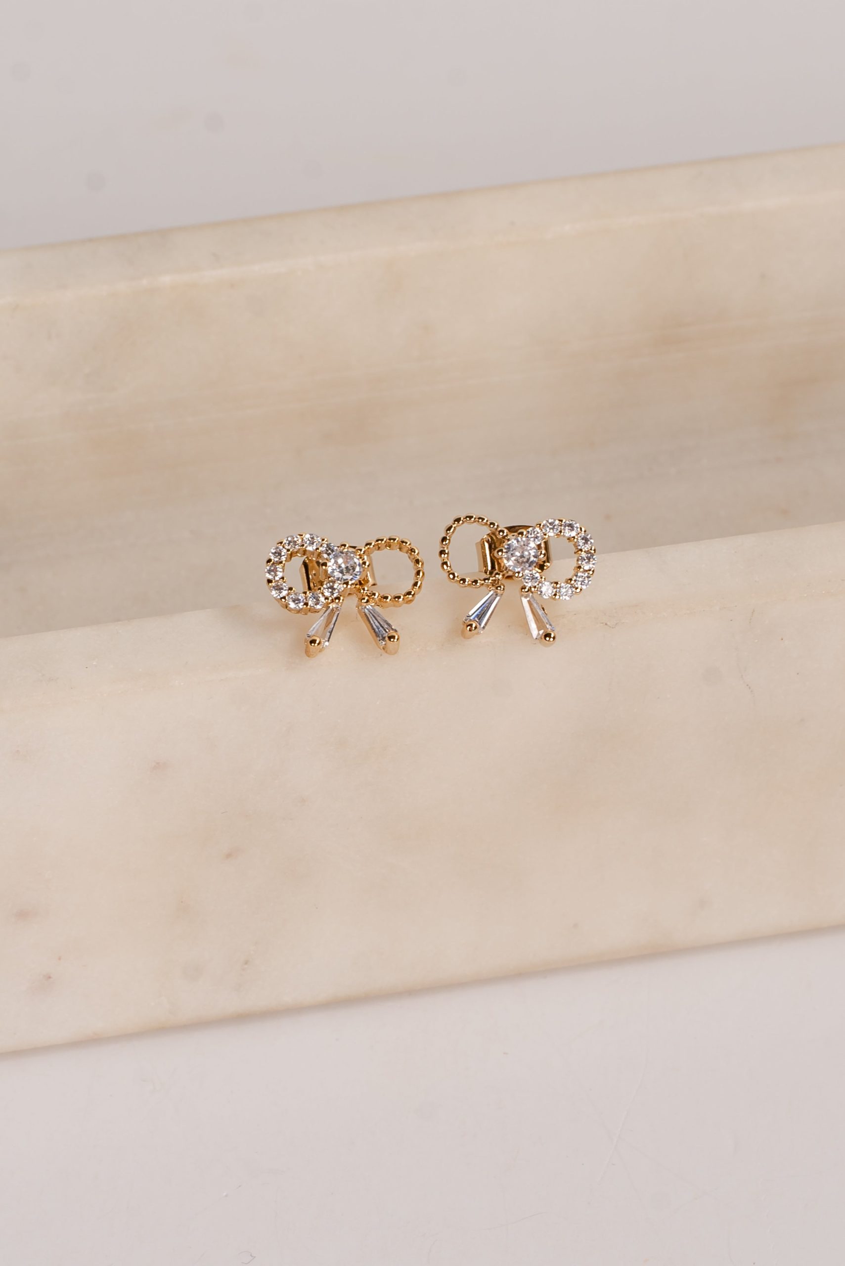 Be the first to review “Allie Gold Rhinestone Bow Earrings” Cancel reply